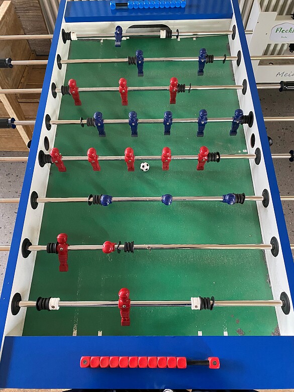 Die Fußballbegeisterung in Borgfeld ist groß, und so erfreut sich auch der Kicker in unserer Aula großer Beliebtheit. Er darf von den Kindern in den Pausen und im Ganztag benutzt werden.