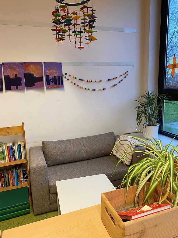 Immer zwei Klassen teilen sich einen Differenzierungsraum, der zwischen den den Klassen liegt. Hier kann in Kleingruppen gearbeitet, gelernt und gespielt werden. Auch Besprechungen finden dort statt.