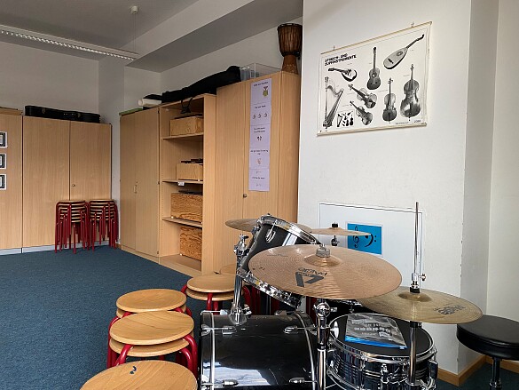 An Fachräumen stehen ein Musik-, ein Werk- und Kunstraum eine Schülerbücherei sowie ein Ganztagsraum zur Verfügung.