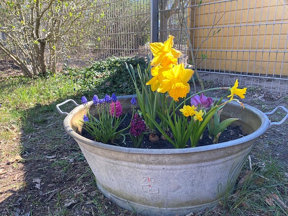 Der Schulhof ist groß und verfügt über einen Schulgarten, ein Fußballfeld, eine Tischtennisplatte und viele weitere Spielgeräte wie Schaukeln, Rutschen, Klettergerüste u.a., die in Zusammenarbeit mit dem Förderverein unserer Schule und der Stiftung Wohnliche Stadt finanziert und aufgebaut werden konnten.
